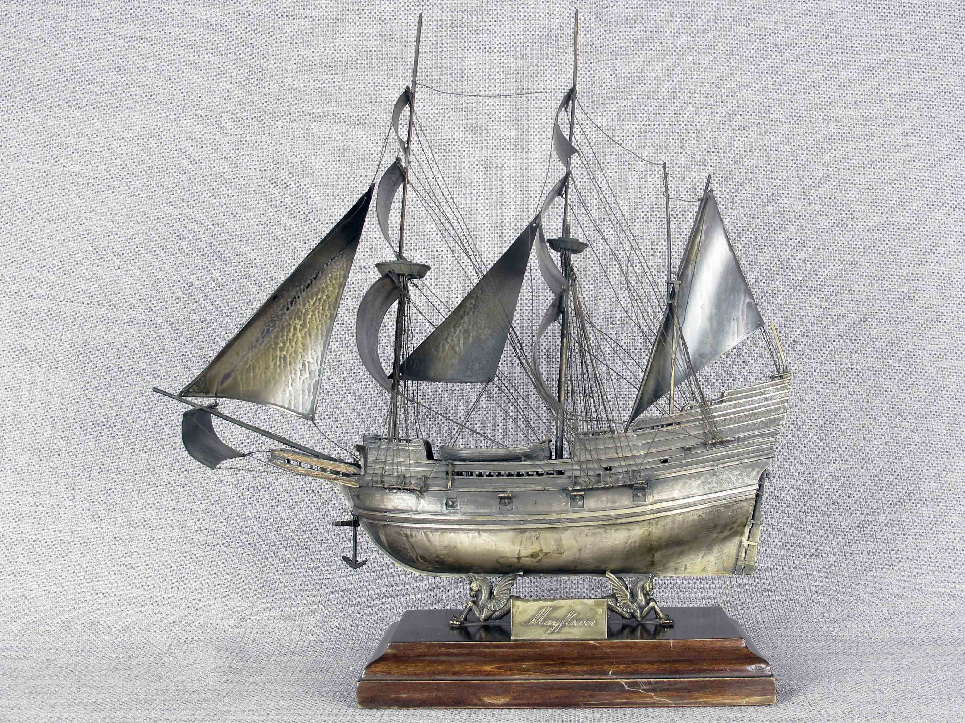 Riproduzione di un modello di imbarcazione Mayflower Argento 800 Alta 42,5 cm con basamento, lunga 40 cm