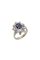 in oro bianco, sommità a margherita, al centro zaffiro ovale di ct 1,0 ca, contornato da diamanti taglio 8/8 per totali ct 0,30 ca