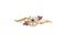 in oro rosa a bassa caratura, al centro ferro di cavallo e fiori decorati con perline e rubini taglio rotondo