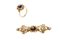 in oro giallo composta da anello e spilla con rose in smalto policromo, perline a decoro e rubini taglio rotondo