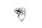 in oro bianco, sommità a losanga, al centro inserto romboidale con zaffiro di ct 0,30 ca e contorno di diamanti taglio brillante, vecchio e 8/8 per totali ct 0,60 ca