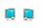 in oro bianco, di forma quadrata con cabochon di turchesi e diamanti taglio brillante per totali ct 0,33 ca, probabile colore G-H, purezza IF-VVS