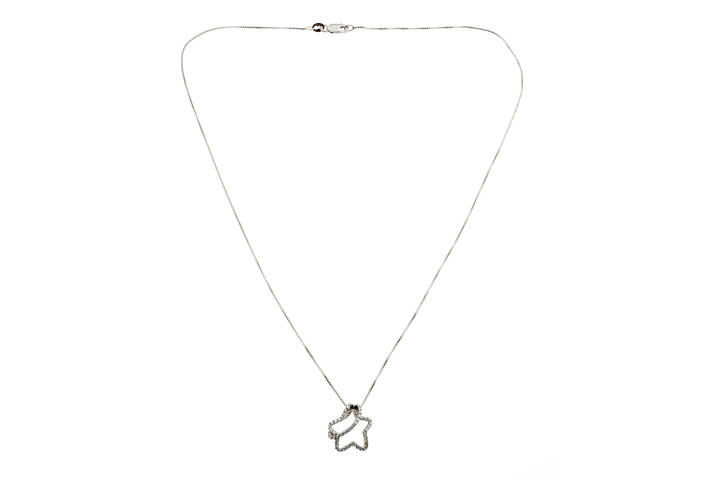 in oro bianco a forma di stella con diamanti taglio brillante per totali ct 0,20 ca, probabile colore G-H, purezza IF-VVS