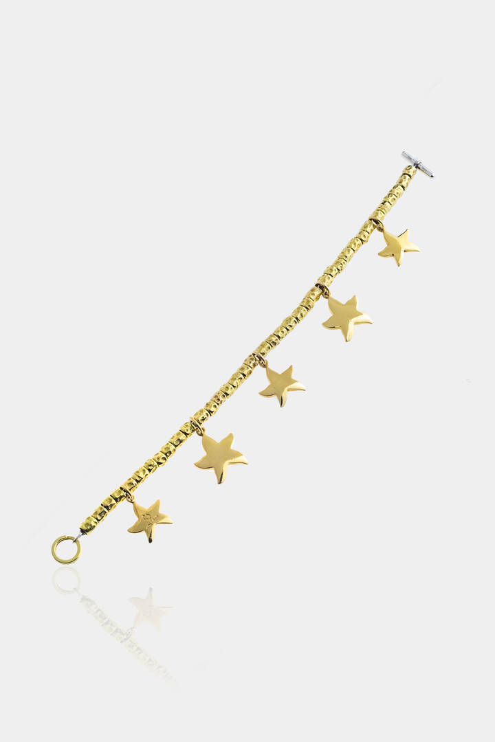 Bracciale in oro giallo, firmato "Pomellato" linea "Dodo" con grani in oro giallo e cinque charms pendenti a forma di stella (due grandi e tre medi)