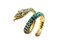 in oro giallo, a forma di serpente, con scaglie in smalto blu e verde; testa con lingua in smalto rosso e diamanti taglio 8/8 e navette per totali ct 0,50ca