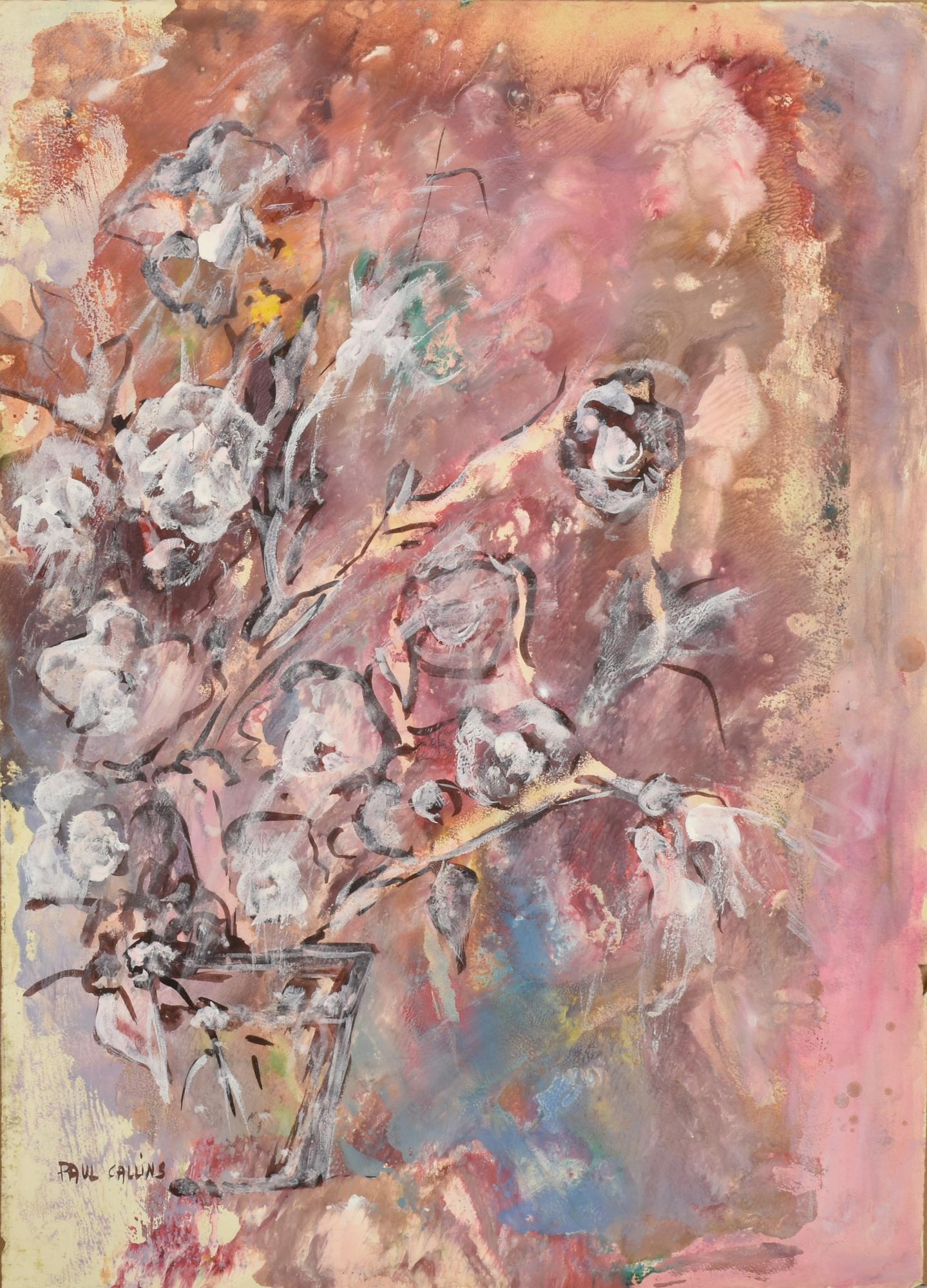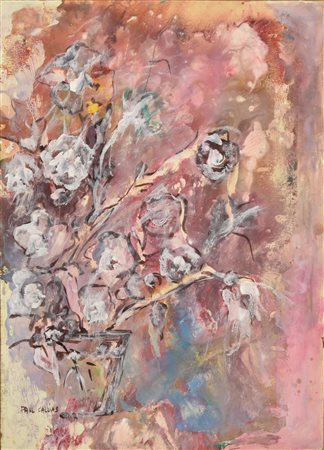 Paul Callins FIORI BIANCHI tempera su carta Fabriano, cm 76X49 firma sul...