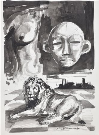 Nino Traverso SENZA TITOLO china acquerellata su cartoncino, cm 51x37 firma e...