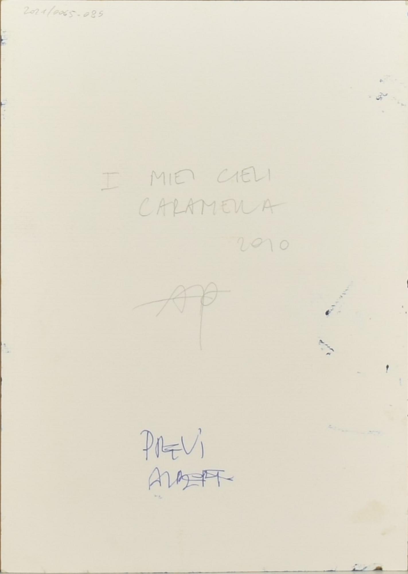 Alberto Previ I MIEI CIELI CARAMELLA tempera su carta, cm 35x25 sul retro:...