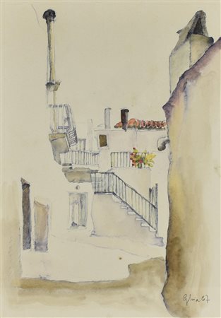 Ignoto SCORCIO acquerello su carta, cm 36x25 firma e data eseguito nel 1987
