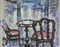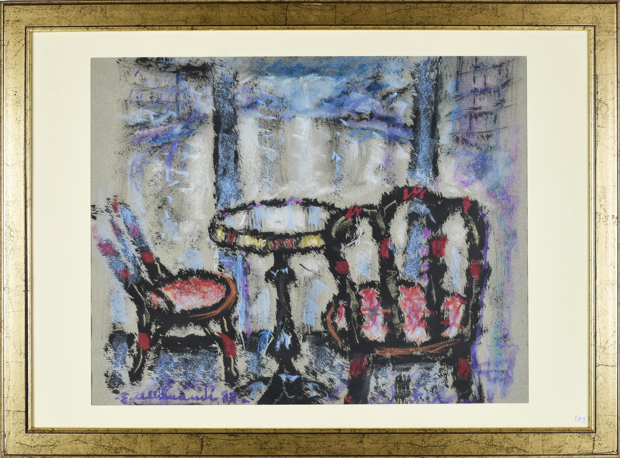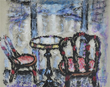 Enrico Allimandi ANGOLO ROMANTICO tecnica mista su carta, cm 45x53 firma e...