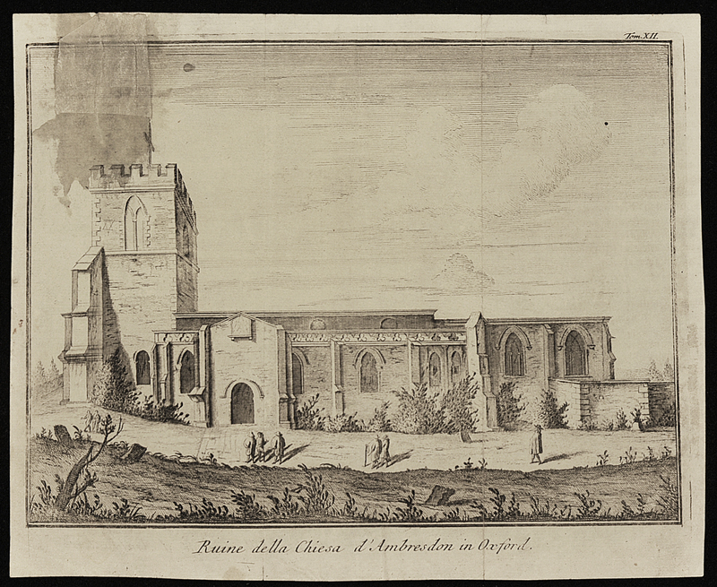 ANONIMO. XVIII SECOLO Ruine della Chiesa d'Ambresdon in Oxford Calcografia su...
