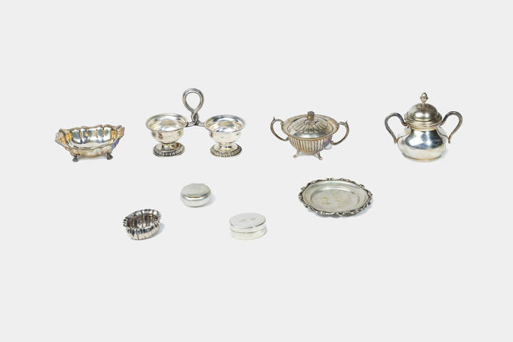 LOTTO DI OTTO OGGETTI IN ARGENTO
