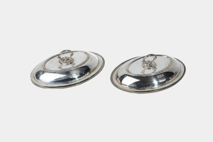 epoca Giorgio III, Londra 1804, argentiere "W. Grundy"; di forma ovale con coperchi recanti prese a volute