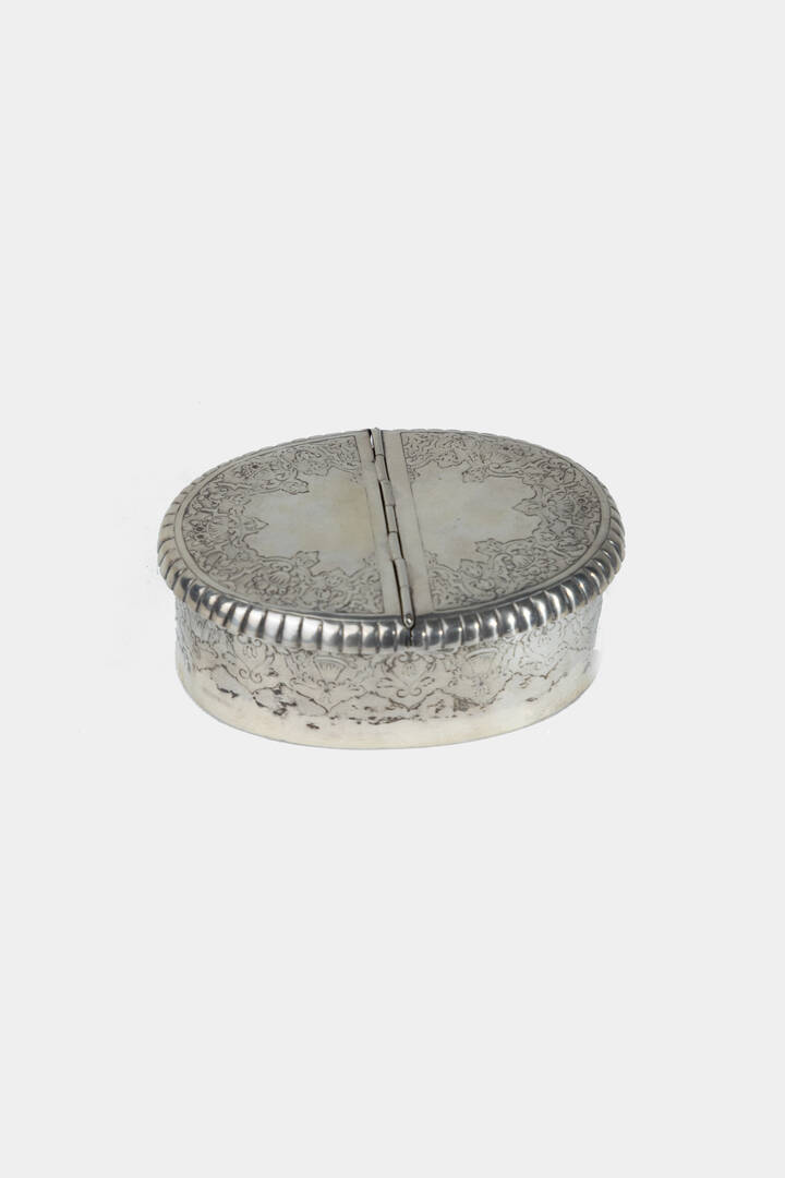 inizi '800; di forma ovale distinta in due settori. Cesellata a motivi vegetali