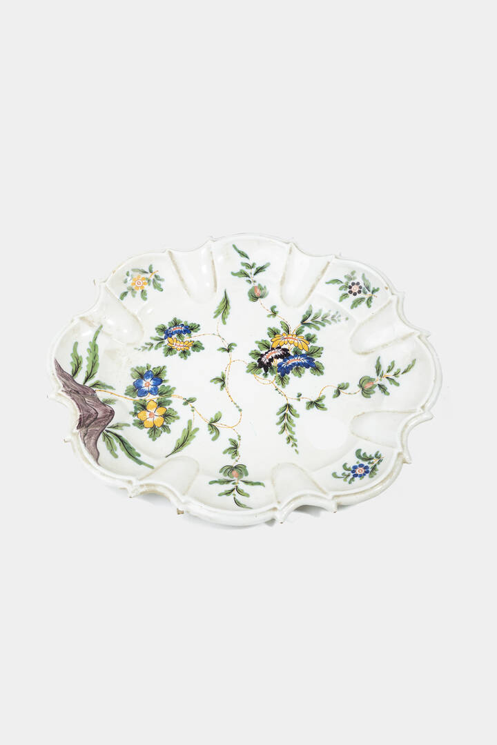 in maiolica, di forma polilobata, decorato a motivi floreali e marcato