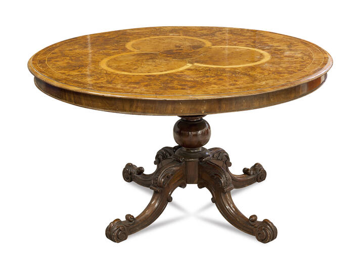 Di forma circolare, in mogano, Francia metà XIX secolo, poggiante su quattro gambe intagliate