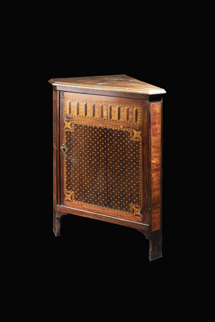 Previous Lot 108 Next Sant’Agostino - Corso Tassoni 56, 10144 Torino Asta 198 Antiquriato Sessione unica Friday 17 December 2021 hours 16:00 (UTC +01:00) ANGOLIERA ANGOLIERA87x62x37in legno di noce, intarsiata a motivi geometriciDifetti