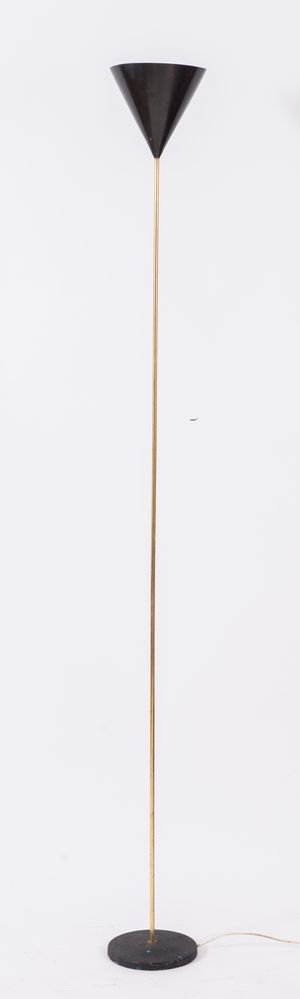 Lampada da terra con base in metallo, stelo in ottone e calotta in alluminio modello LTE 5 (Imbuto). Prod. Azucena, Italia, 1953 Cm 194x20x20.