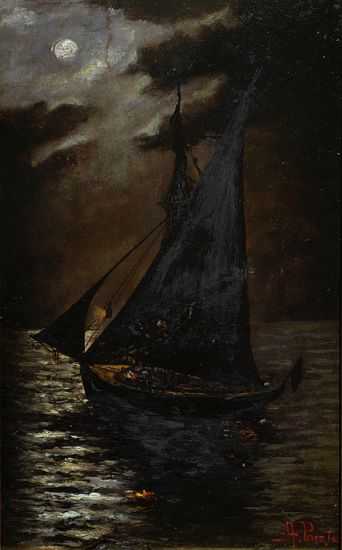 Lot 102 | A. PORZIO (XX SECOLO) Pesca notturna Olio su tavola 27,5x44,5 cm. Firma: "A....