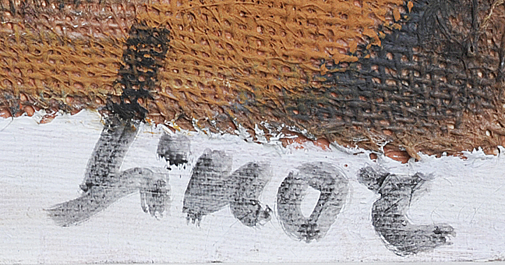 LINO RUSSO (1944), DETTO LINOR Senza titolo 1994 ca. Tecnica mista su tela 70x50 cm. Firma al recto e al verso