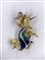 SPILLA IN ORO GIALLO, SMALTI, DIAMANTI E RUBINO. Modellata a foggia di uccellino, con piumaggio in smalti policromi a fuoco, dettagli definiti da piccoli diamanti e un rubino. Peso complessivo 22,67 grammi.