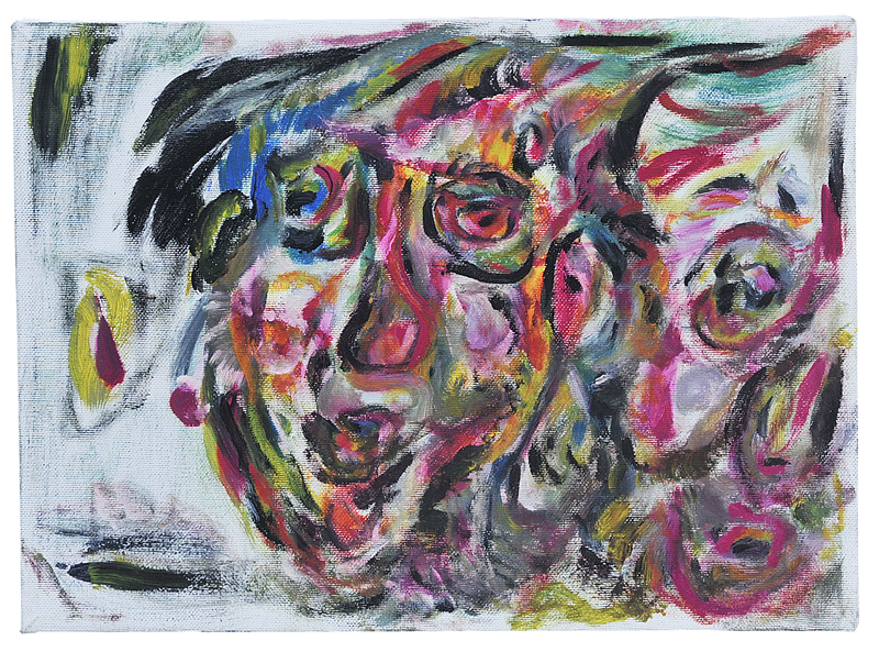 ALESSANDRO LE GRAZIE. XX SECOLO Le maschere rivali Luglio 1993 Acrilico su tela 30x40 cm. Titolo, firma e data al verso