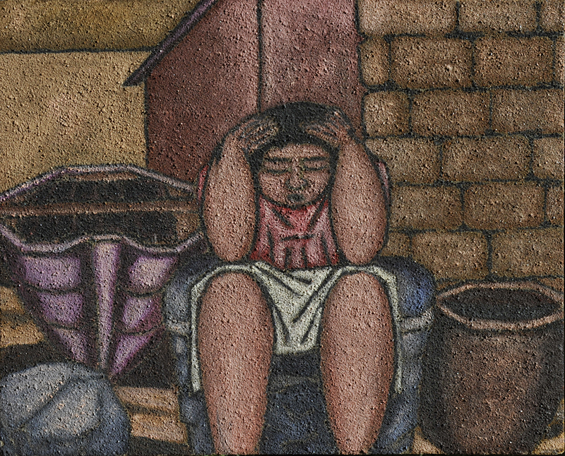 GENNARO MARRA (1938-2001) Solitudine 1993-1994 Tecnica mista su compensato preparato a sabbia 40x50 cm. Firma e titolo al verso