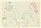 Pablo Picasso FEMME ET VIEUX litografia su carta (d'apres), cm 33,5x48 firma...