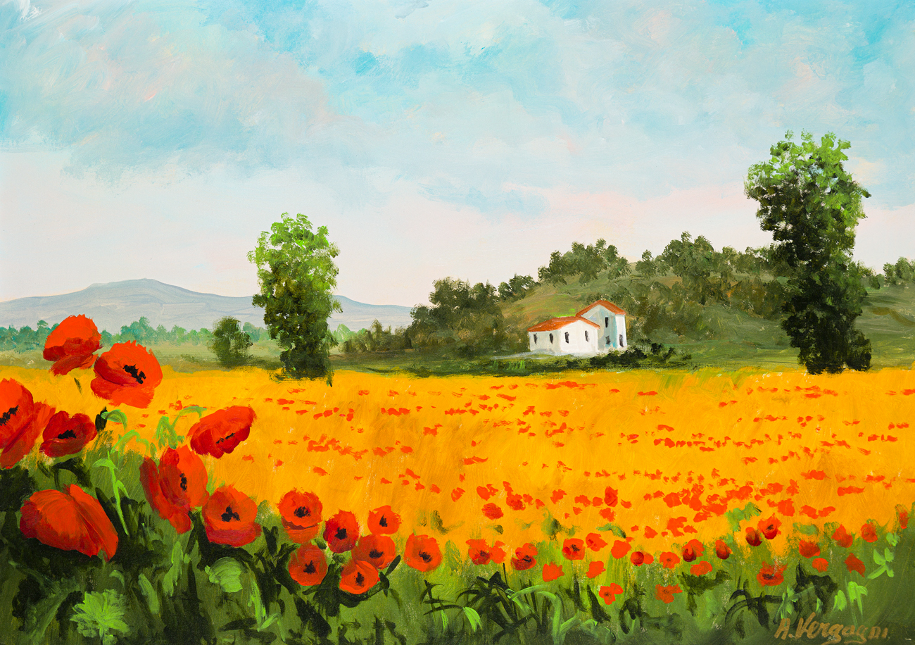 ARTURO VERGAGNI (1925) - Senza Titolo (Campo di papaveri)