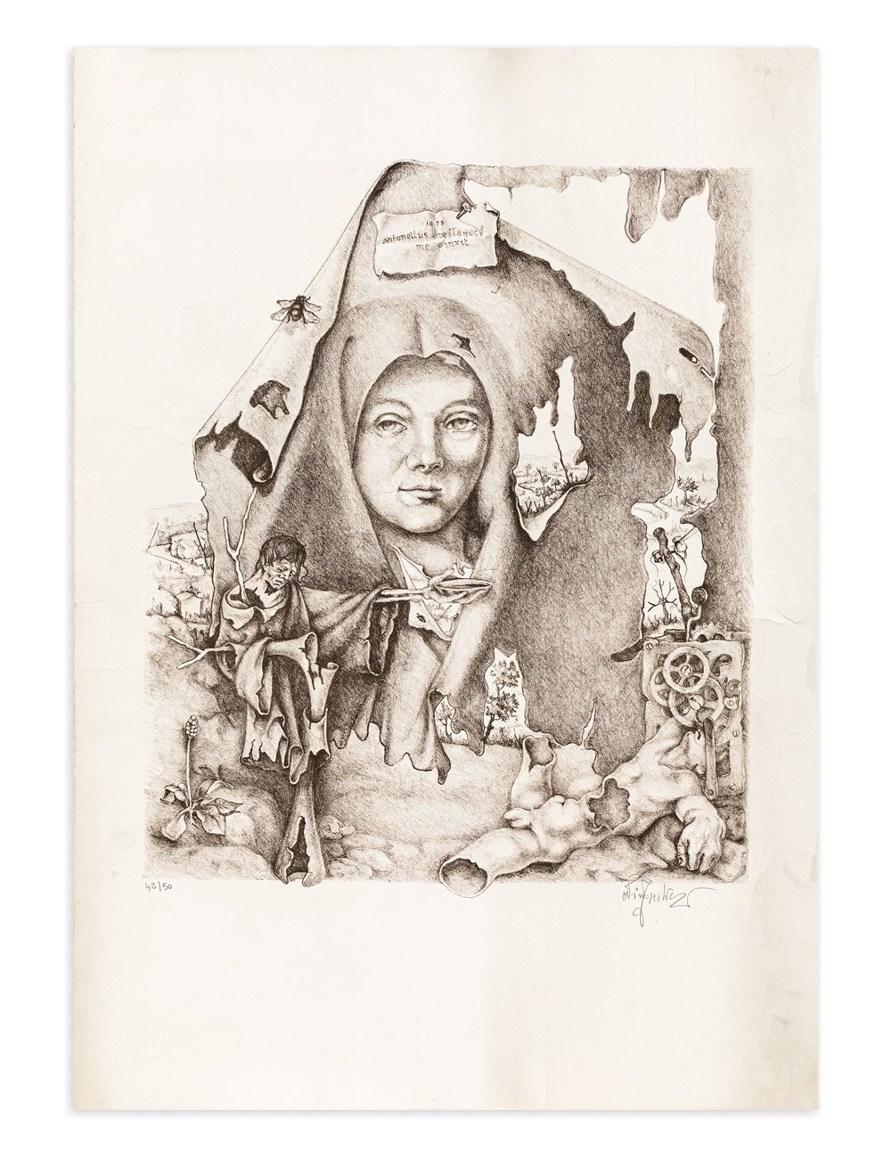 Firma e numerazione (Esemplare 42/50) a matita al fronte