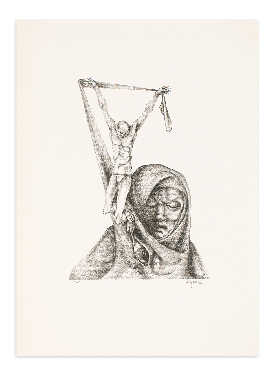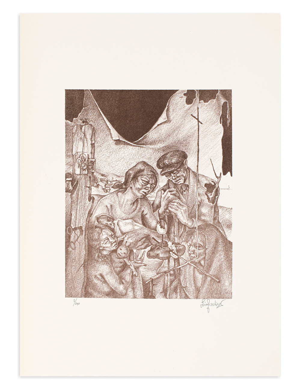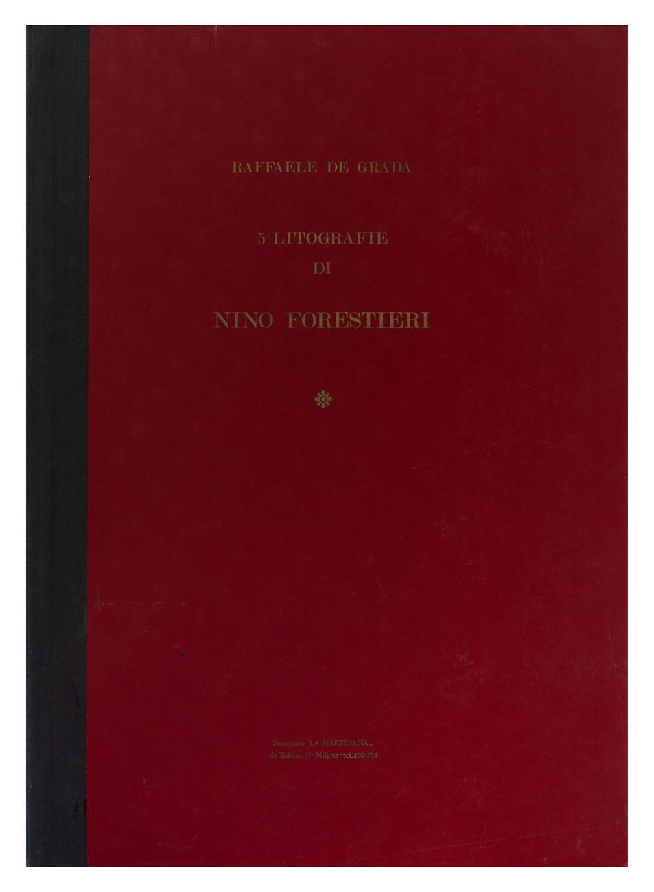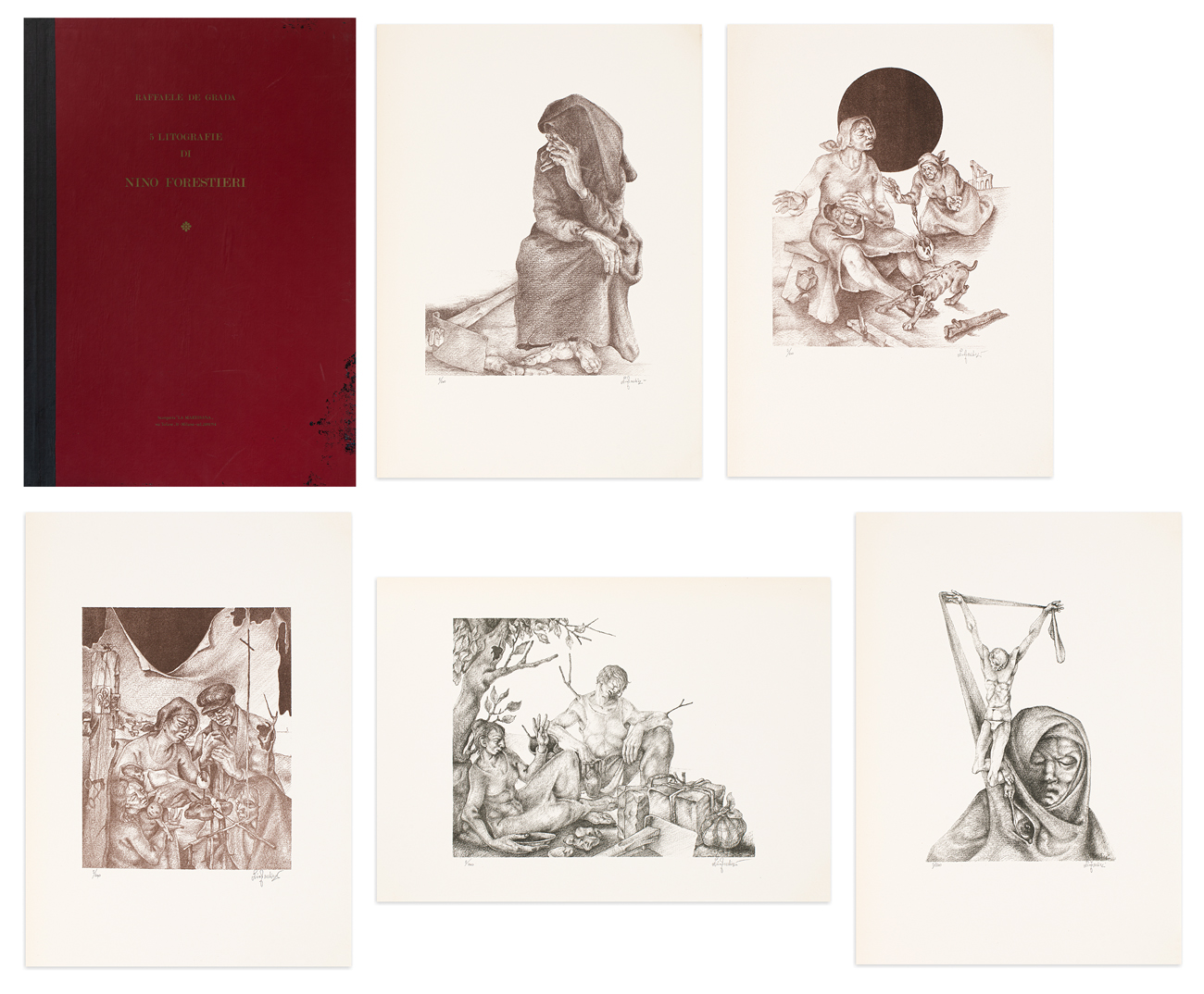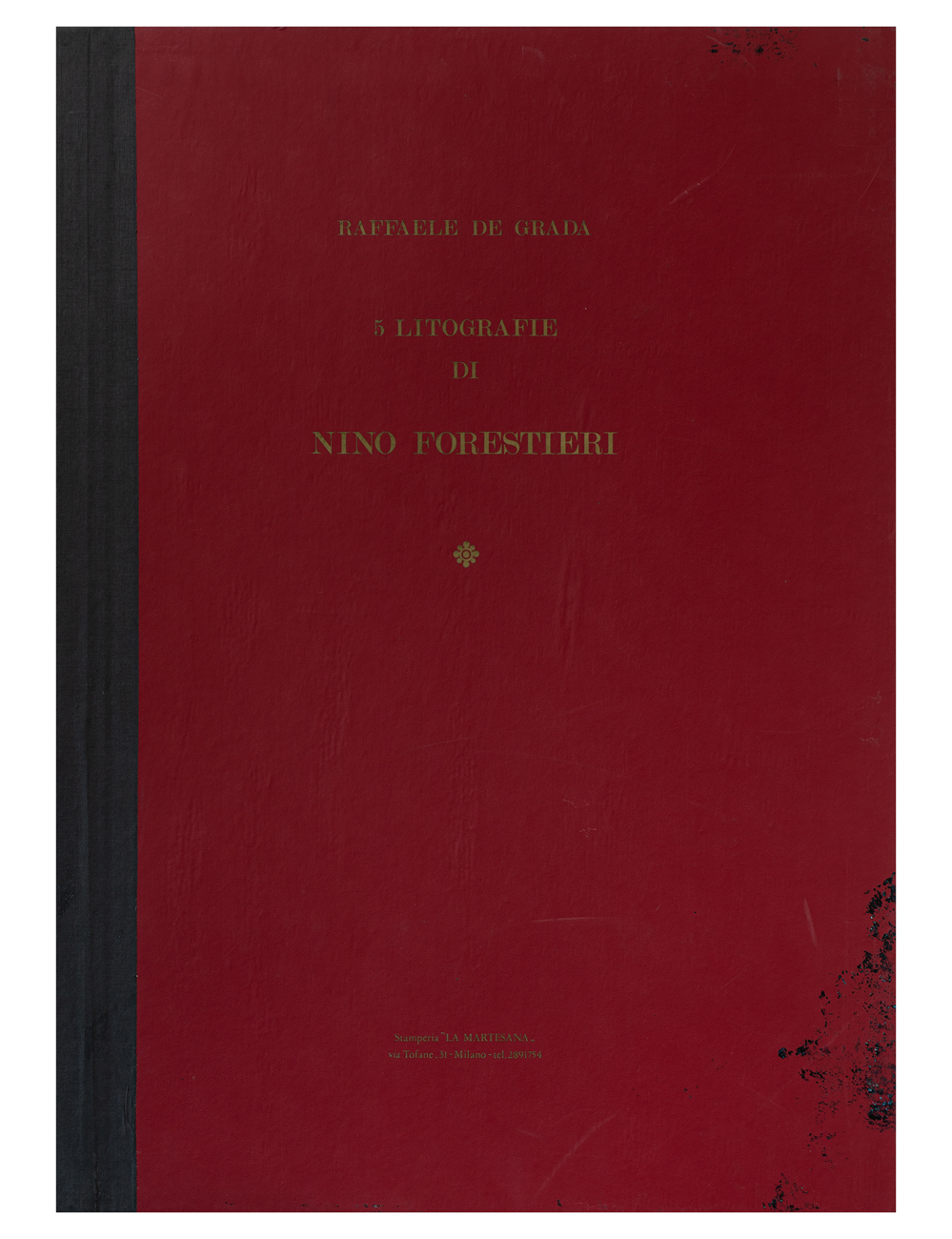 Cartella contenente testo di presentazione di Raffaele De Grada e 5 litografie di Nino Forestieri, ciascuna recante firma e numerazione (Esemplari 1/100) a matita al fronte