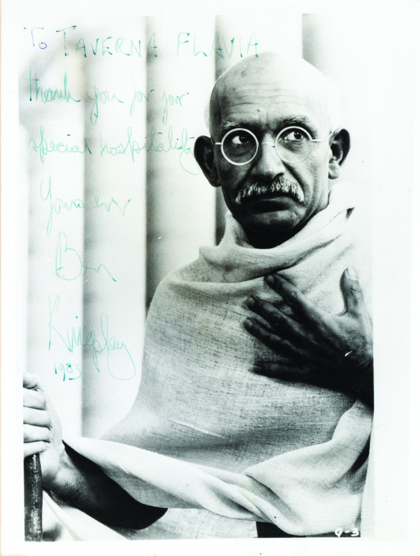 Dedica e firma autografa del celebre attore inglese, qui ritratto nei panni del Mahatma Gandhi, il ruolo vestito nell’omonimo film del 1982 e per il quale ottenne l’Oscar per la migliore interpretazione maschile.