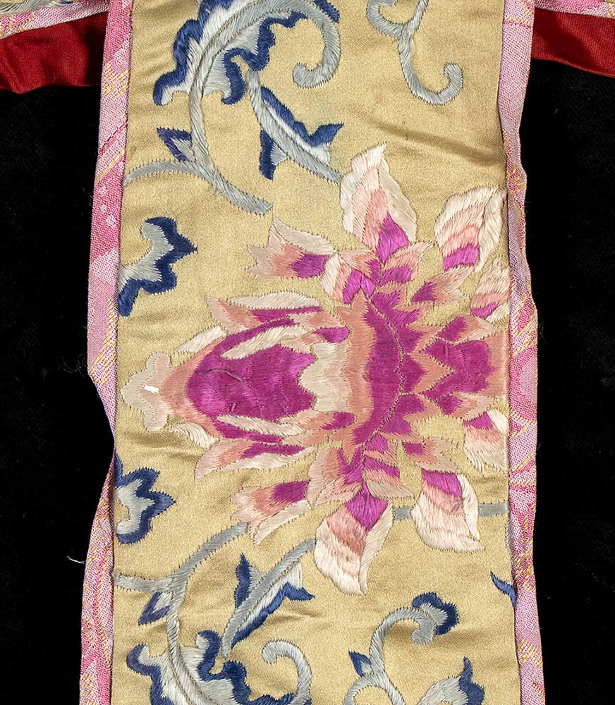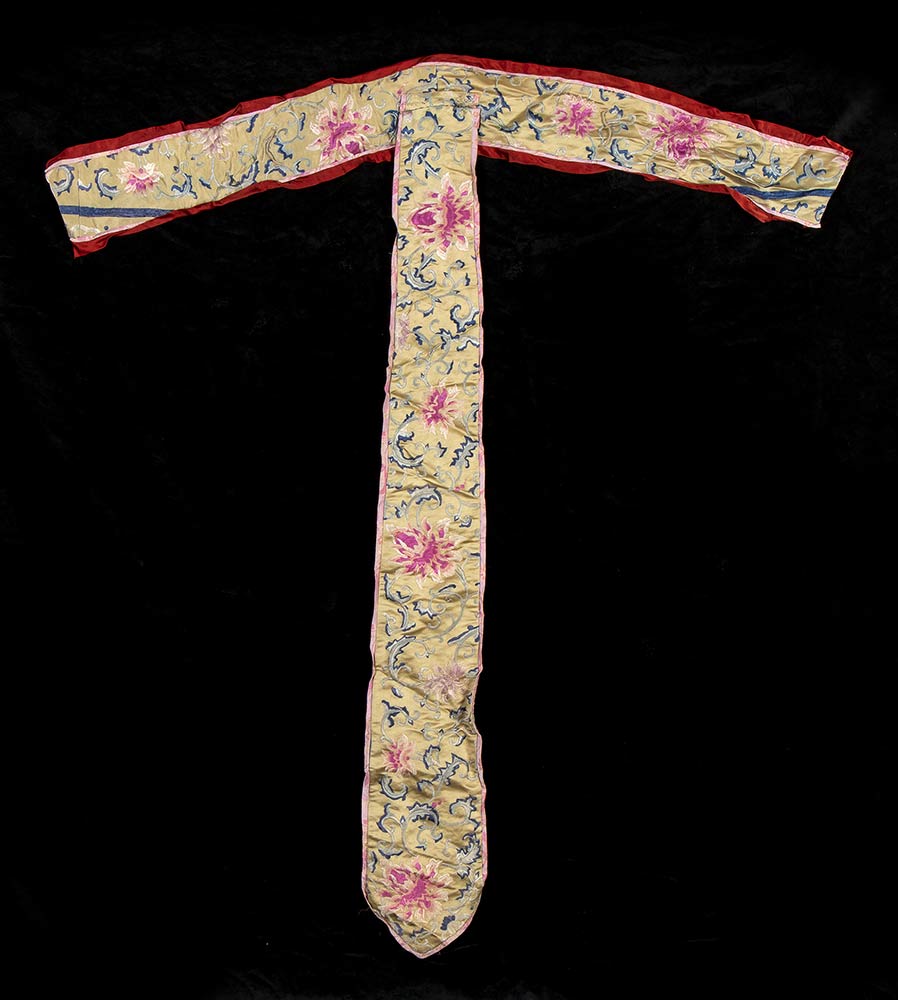 Cintura per kimono, in raso e ricami floreali in filo di seta. Parte di costume di scena usato sul set del film L'ULTIMO IMPERATORE per la regia di Bernardo Bertolucci, del 1974. Misure circa cm.100 x 100. Ottime condizioni