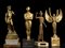 Lotto di 4 differenti statuine in metallo dorato e bronzo su basette in marmo, per PREMIO NAZIONALE DAVID DI MICHELANGELO del 1982, PREMIO ROMA 84, ed altri due non meglio identificati (simili OSCAR cinematografici). Altezza circa cm.32/35, buone condizioni