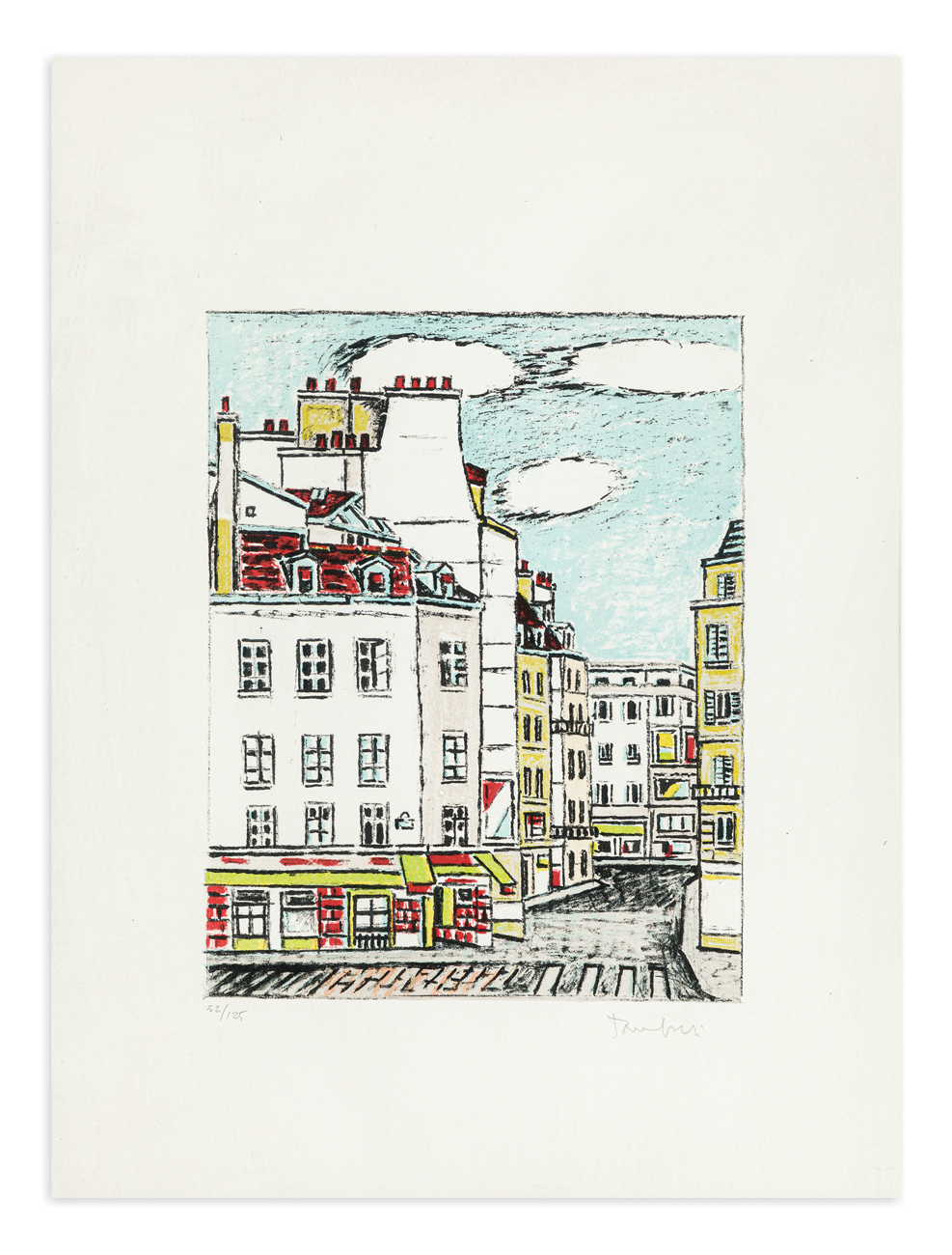 Firma e numerazione (Esemplare 52/125) a matita al fronte