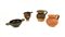 STATO DI CONSERVAZIONE: integri, ad eccezione dello skyphos scheggiato e lacunoso di un'ansa