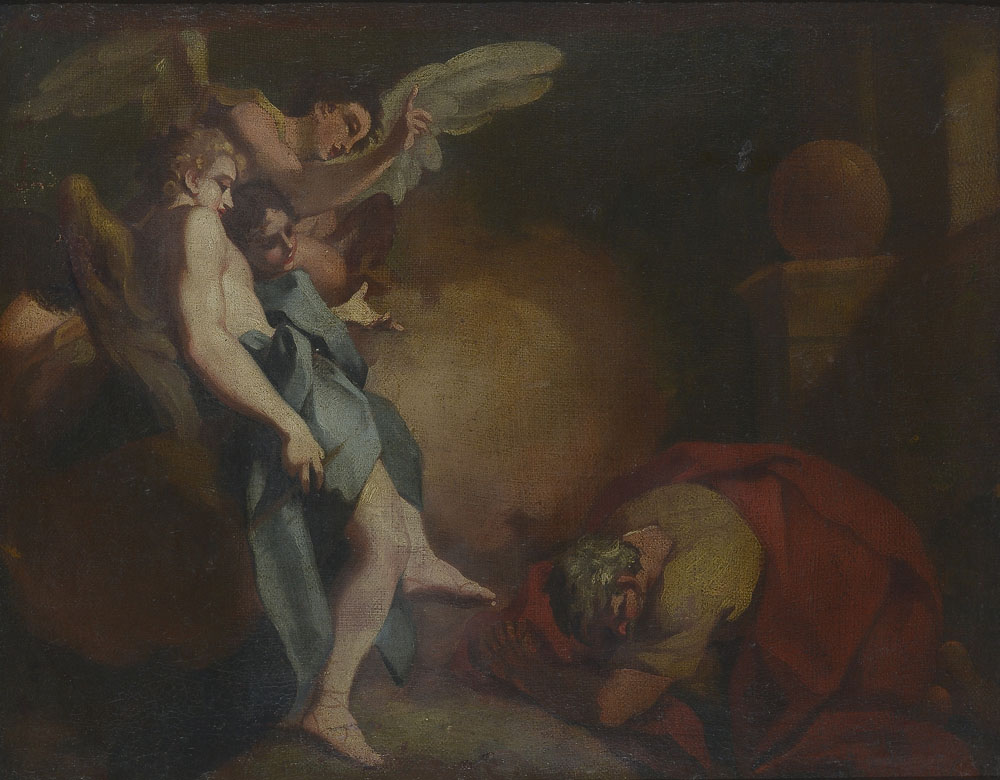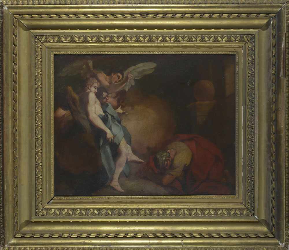 Pittore neoclassico La visione di Abramo Olio su tela, in cornice cm. 48,5x36