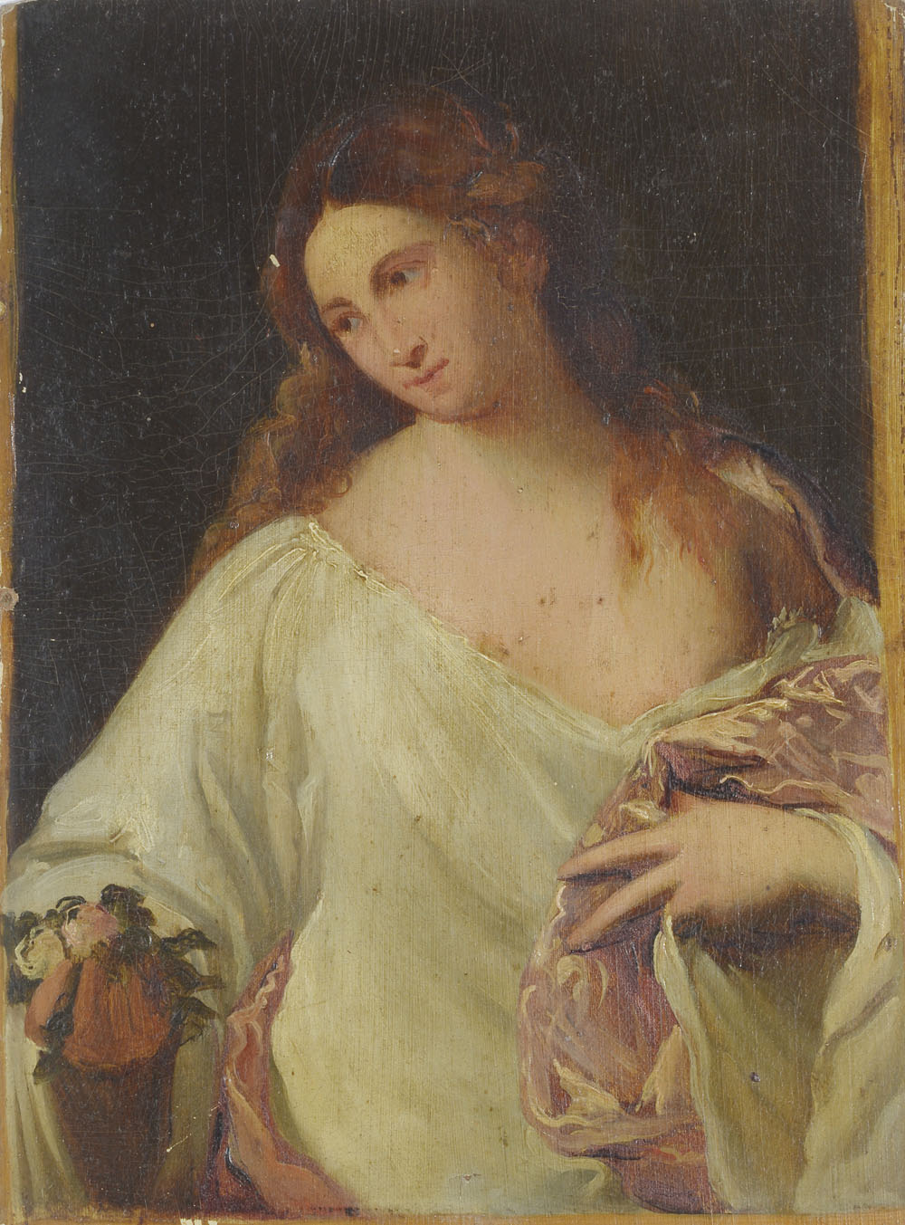 Scuola italiana del XIX secolo [da Tiziano] Flora Olio su cartone cm. 20,5x15