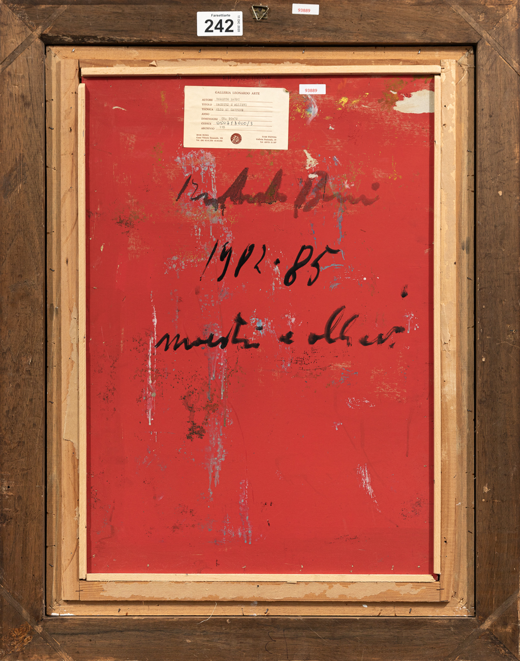 Etichetta della Galleria Leonardo Arte al retro