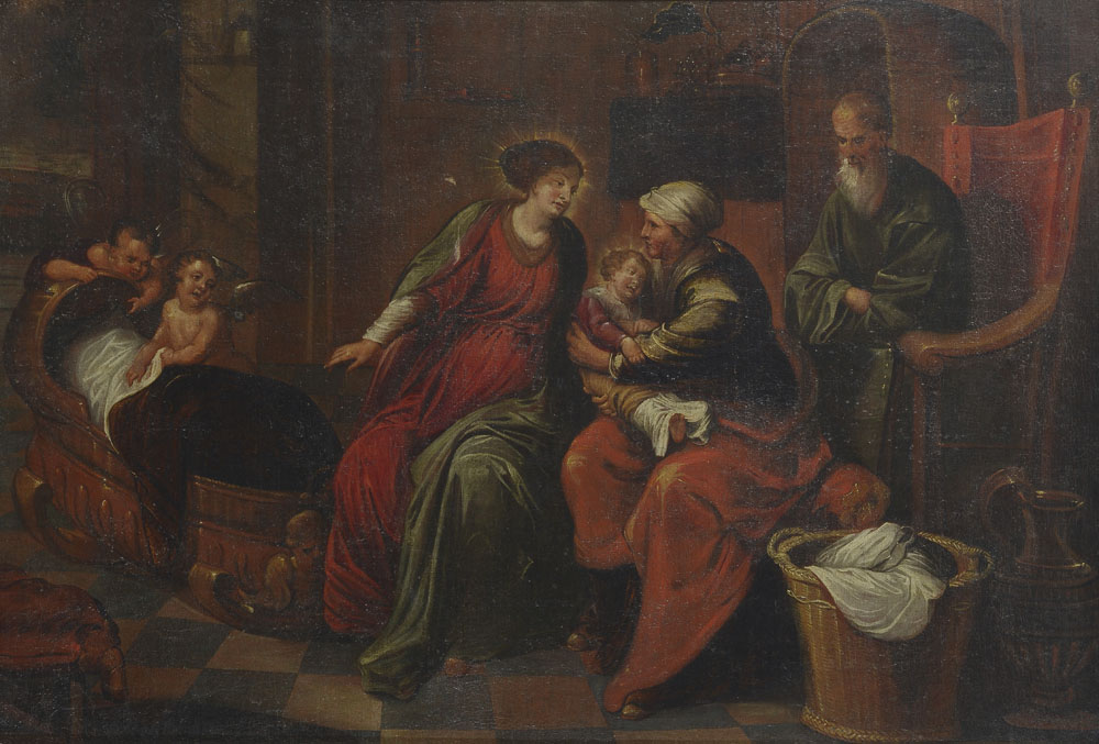 Scuola fiamminga del XVII secolo Madonna col Bambino San Giuseppe e Sant'Anna