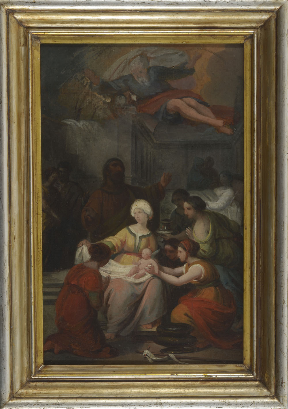 Scuola italiana del XIX secolo Natività Olio su tela, in cornice cm. 41x27