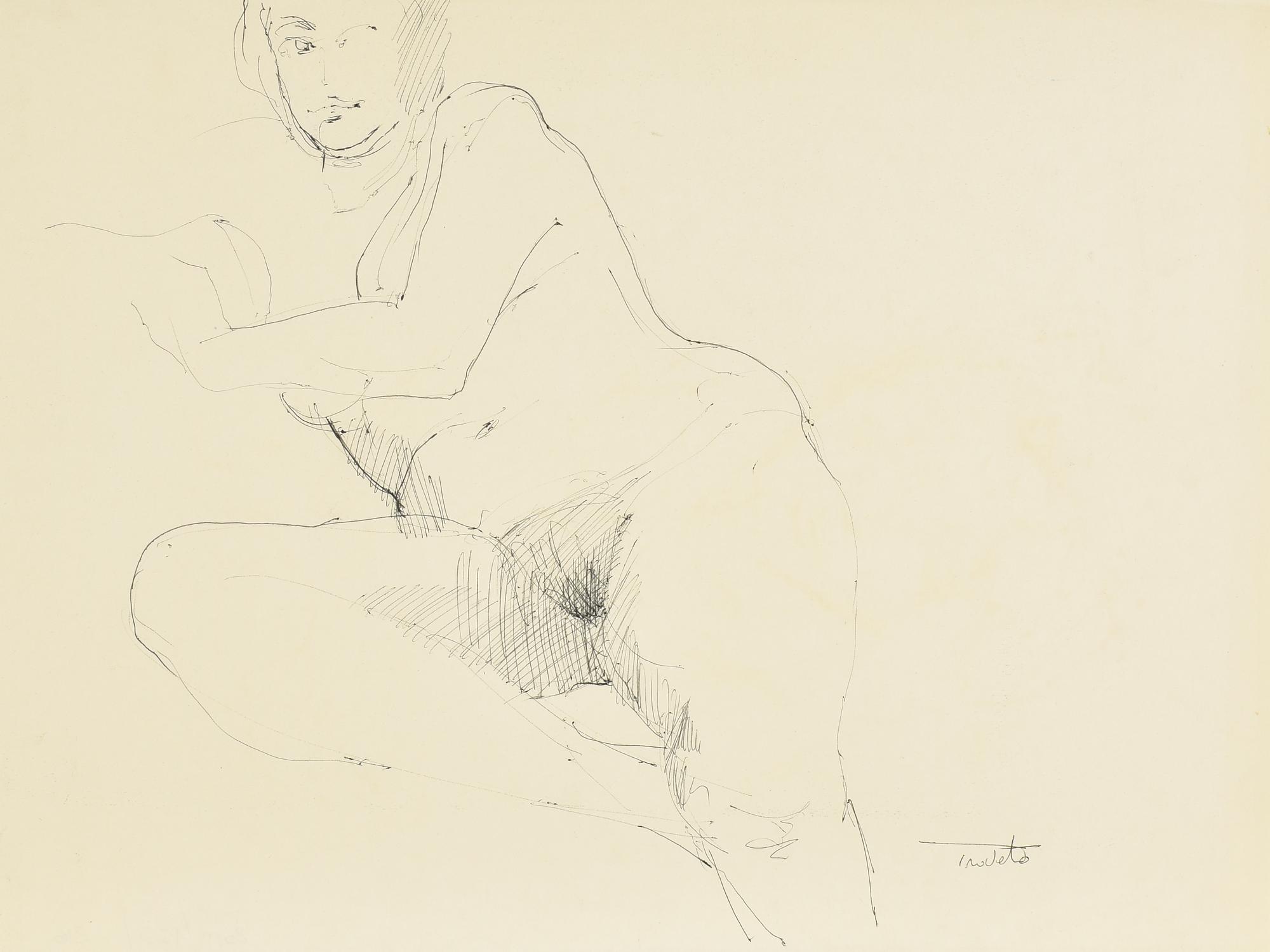 Lot 68 | Sebastiano Trovato NUDO SEDUTO china su carta, cm 37x50 firma
