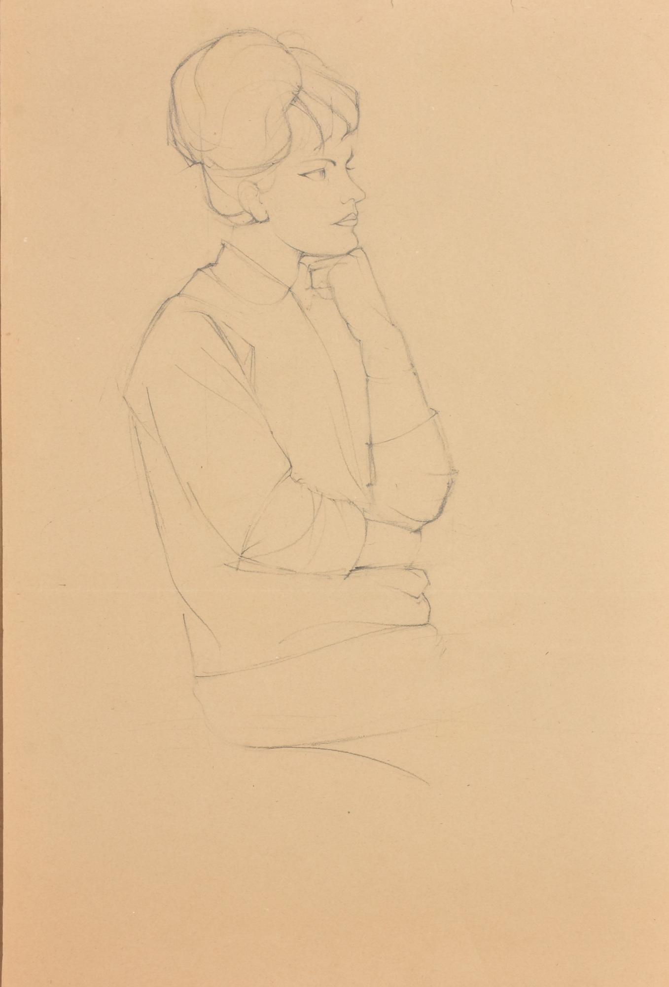 Corvo Ponte RITRATTO FEMMINILE matita su carta, cm 60x40 retro: firma e...