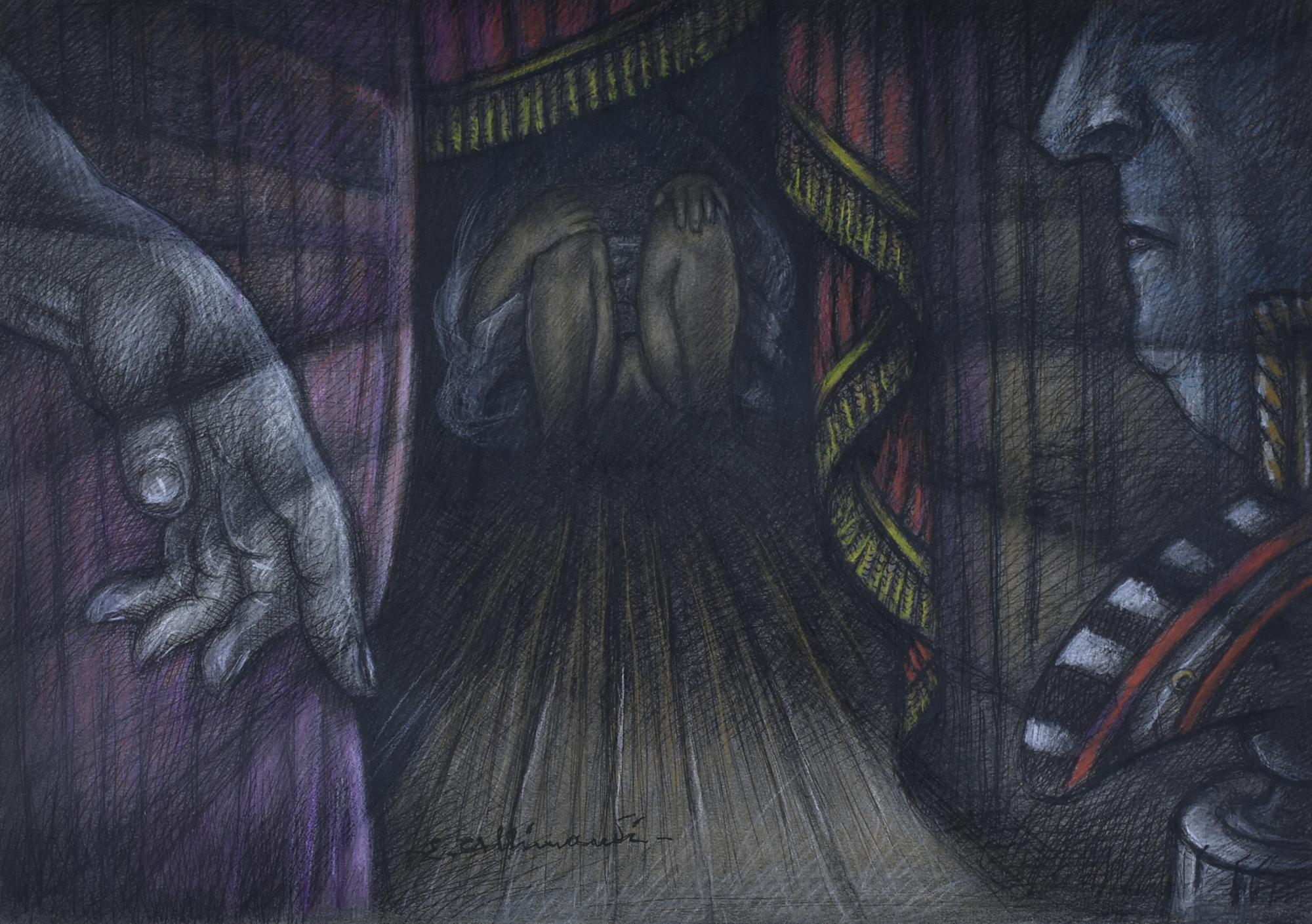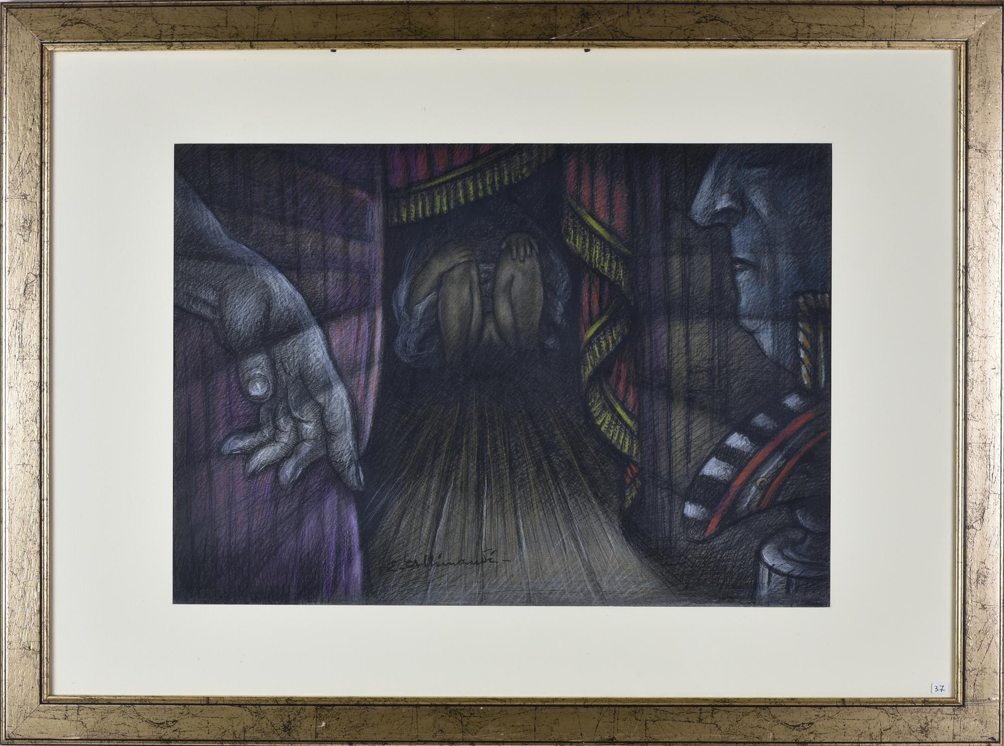 Enrico Allimandi LA MANO tecnica mista su carta, cm 35x50 firma eseguita nel...