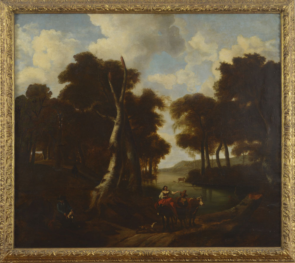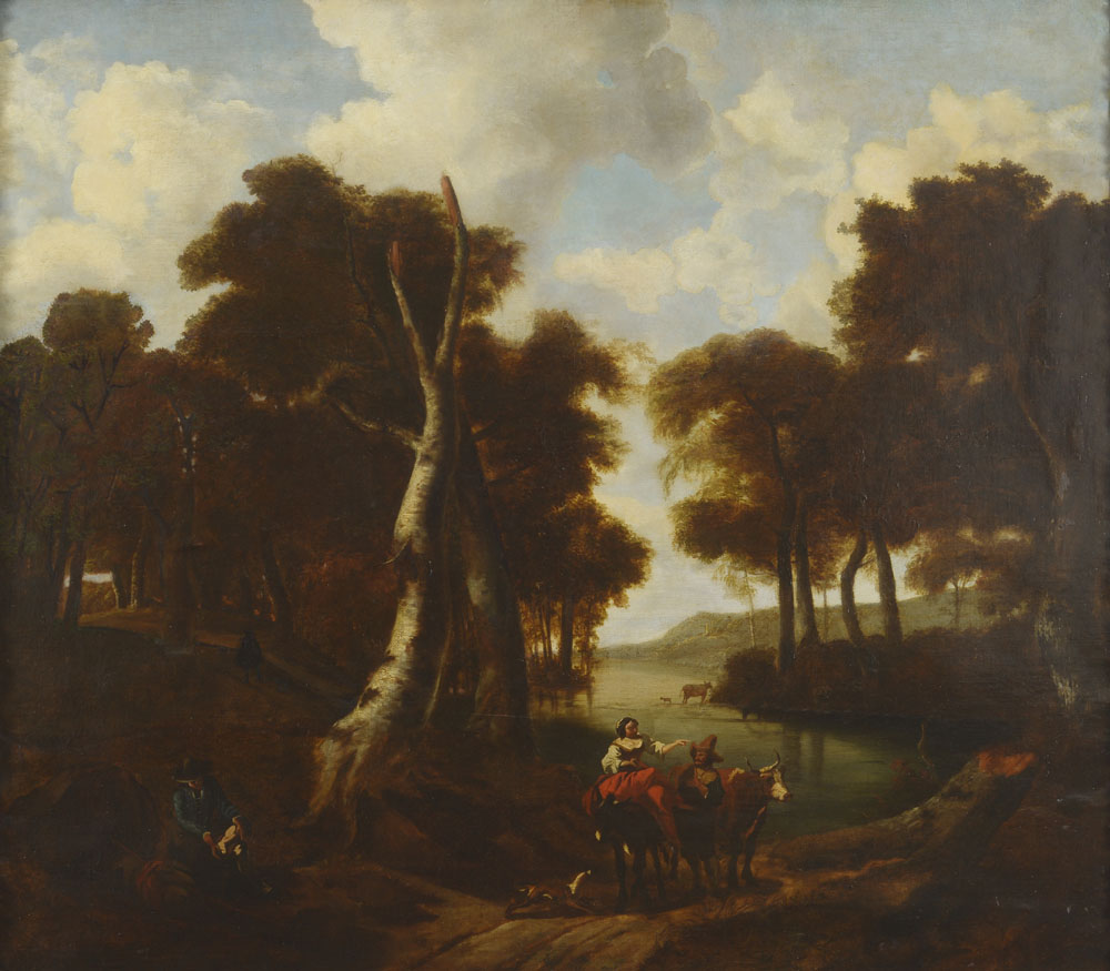 Lot 102 | Scuola francese del XVII secolo Paesaggio con viandanti Olio su tela, in...