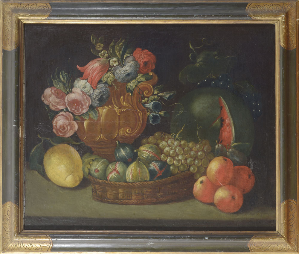 Scuola italiana Natura morta con frutta Olio su tela in cornice cm. 62,5x75,5