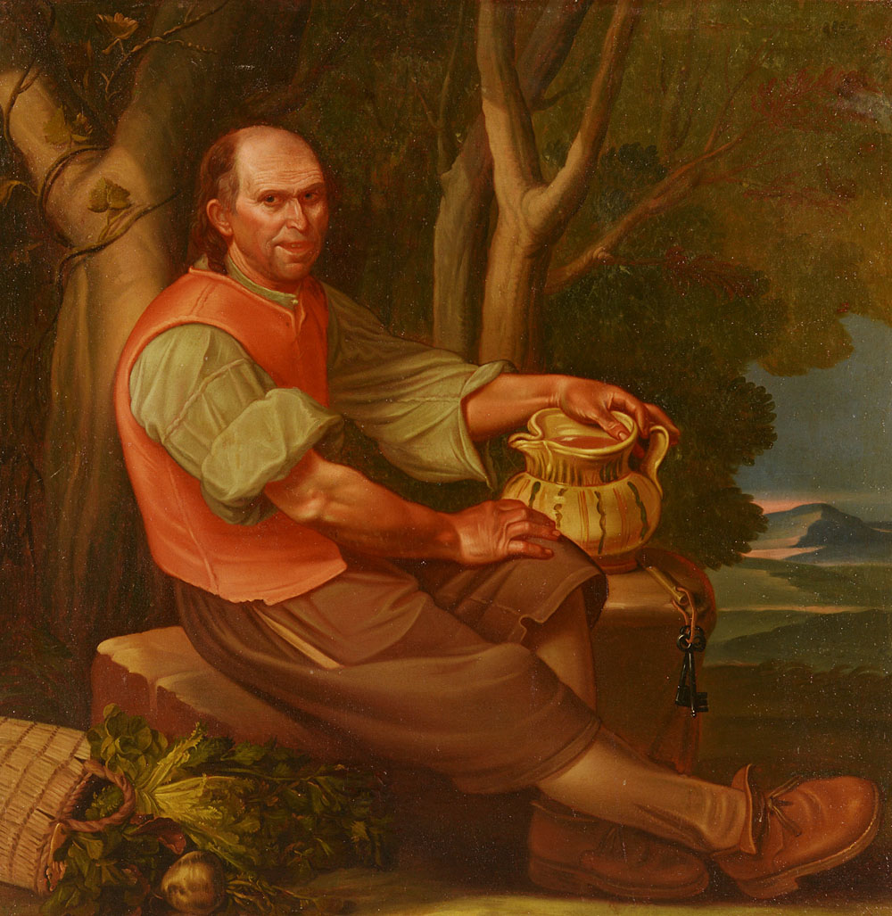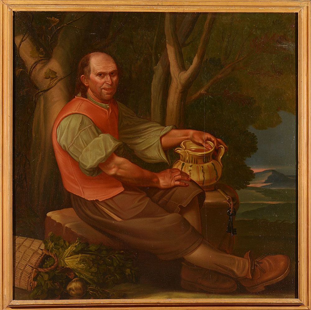 Scuola emiliana del XVII secolo Contadini che riposano dopo il lavoro, coppia...