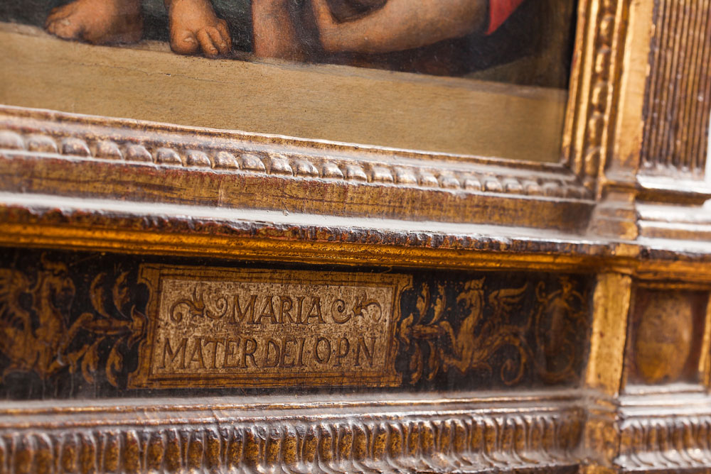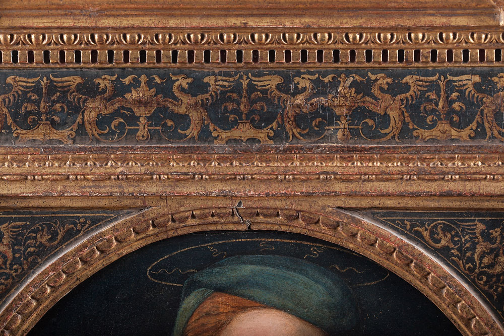 Tempera su tavola, in cornice intagliata, dorata e decorata