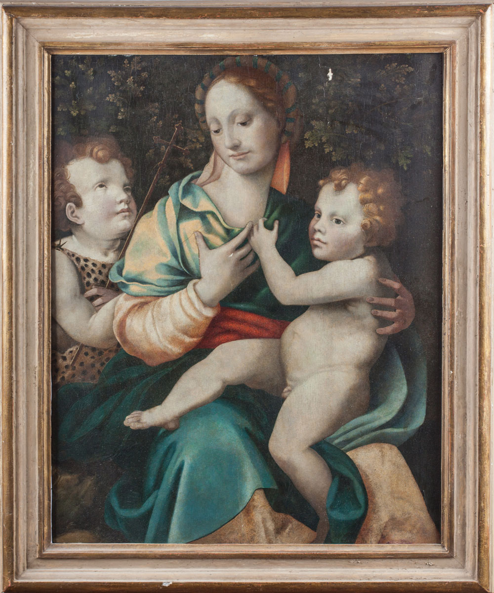 Scuola toscana del XVI secolo Madonna col bambino e San Giovannino