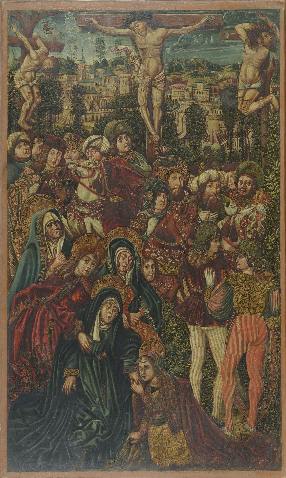 Scuola spagnola Crocifissione Olio su tavola cm. 114x68